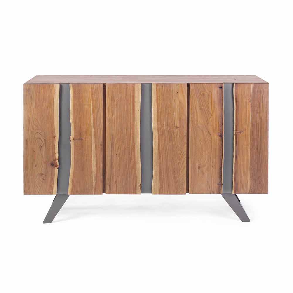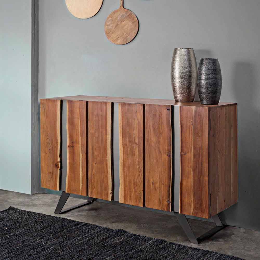 Modernes Design Sideboard aus Akazienholz mit Metalleinsätzen.