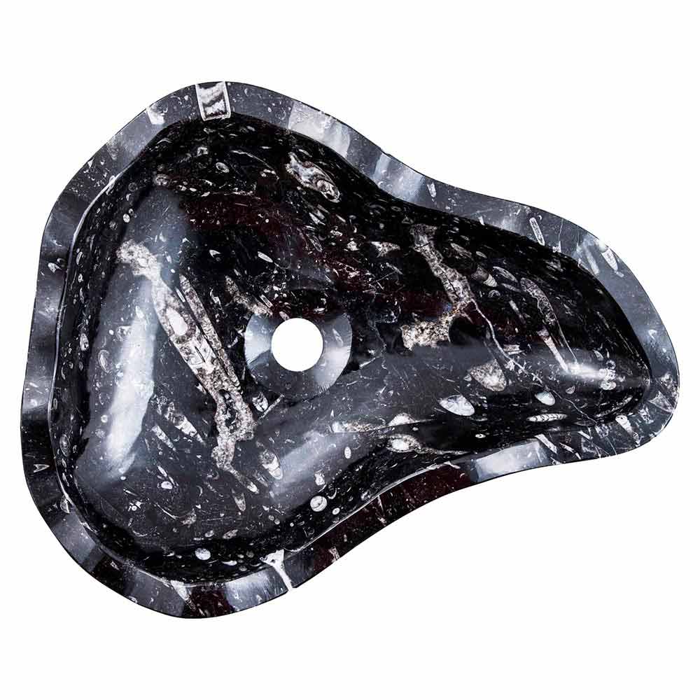 Design für das Bad: Aufsatzwaschbecken aus Marmor mit Fossilien, Unikat.