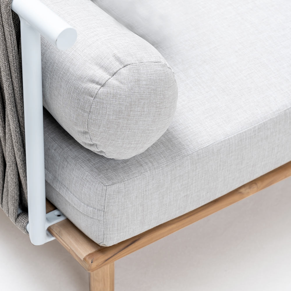 Modulares Gartensofa aus Teakholz, Aluminium-Rückenlehnen und Geflecht aus Olefin/PP ROPE und Kissen