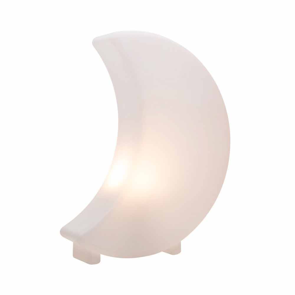 Mondförmige Steh- oder Tischlampe für drinnen oder draußen in zwei Größen und mit verschiedenen Angriffsarten erhältlich.