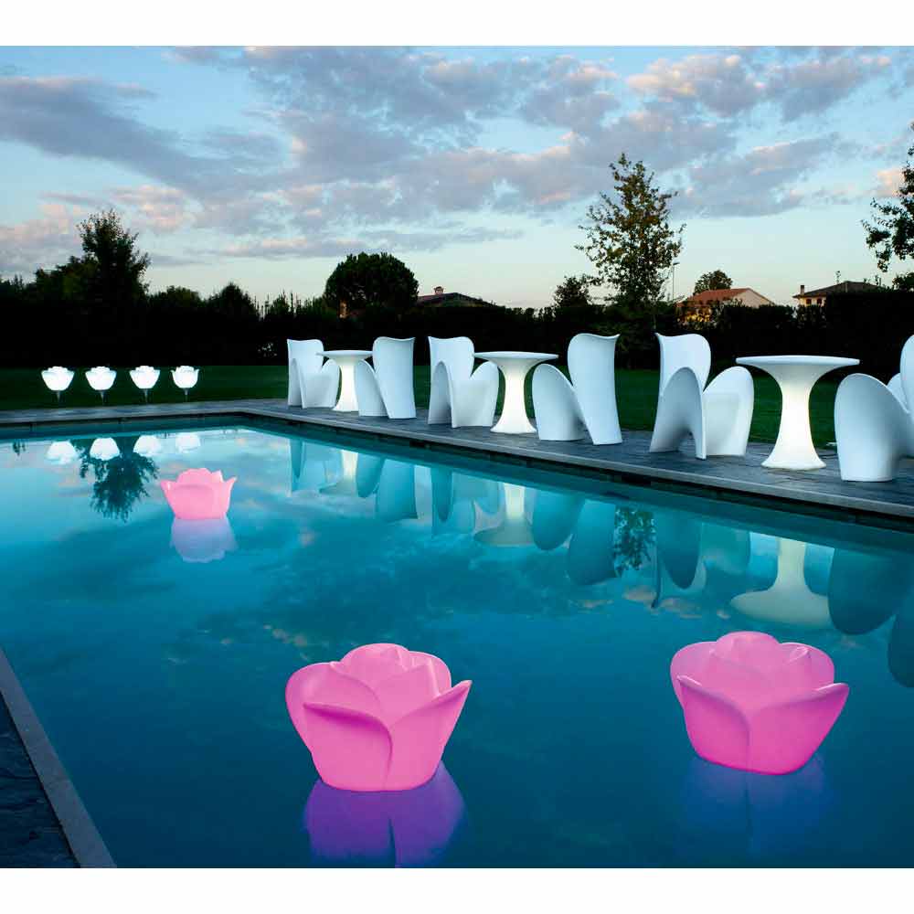 Die Baby Love Waterproof Rose blüht einzeln, in Reihen oder in Gruppen auf dem Wasser, wie eine magische Seerose aus Licht, die auf Schwimmbädern und Springbrunnen schwimmt und geboren wurde, um die Feiertage zu beleuchten. Immer zart, suggestiv, unverkennbar. Baby Love , eine Zierlampe mit einem stilisierten rosa Profil, kann verschiedene Formen annehmen, eine originale Stehlampe in verschiedenen Höhen, eine elegante Stehlampe, ein Deckenleuchter, eine Wandapplikation und eine Außenlampe in den Versionen Waterptoof und Garden Entwickelt für eine schnellere und vollständigere Entsorgung von Regenwasser.
