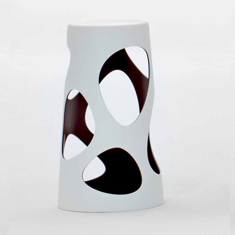 Die Lebendigkeit der Freiheit beruht auf dem offenen Spiel von Hohlräumen und Festkörpern auf Oberflächen und Volumina, die durch chromatische Schwingungen innerviert werden. Die großen Löcher im hohlen Stamm verstärken mit ihrer Asymmetrie die Energie der zweifarbigen Oberfläche. Und im Triumph des konischen Abschnitts werden die Räume vergrößert: Perfekt stapelbar, belegen und befreien die LIbery-Hocker die Räume mit einem originellen Hauch von Design.