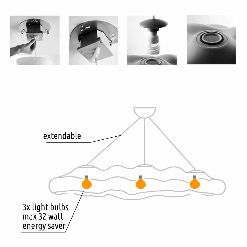 Beleuchtungsart: 3 x max 32W E27 Kompaktleuchtstofflampe 230V 50/60 Hz (nicht im Lieferumfang enthalten).
