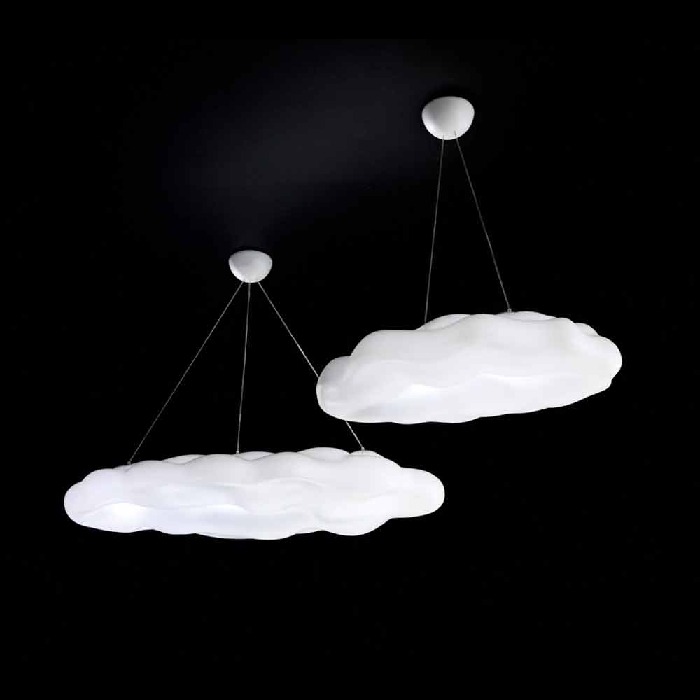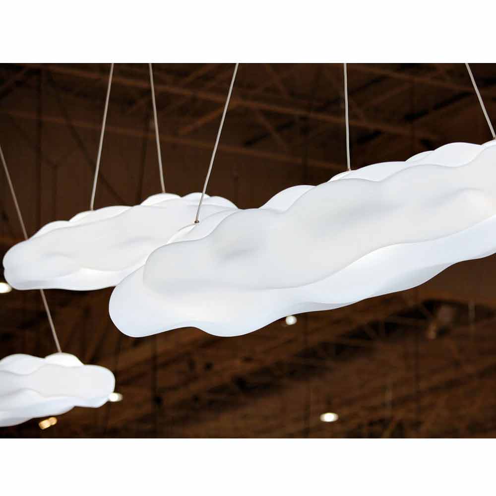 Hängelampe für Außen oder Innen in Form einer Wolke aus transparentem Polyethylen.