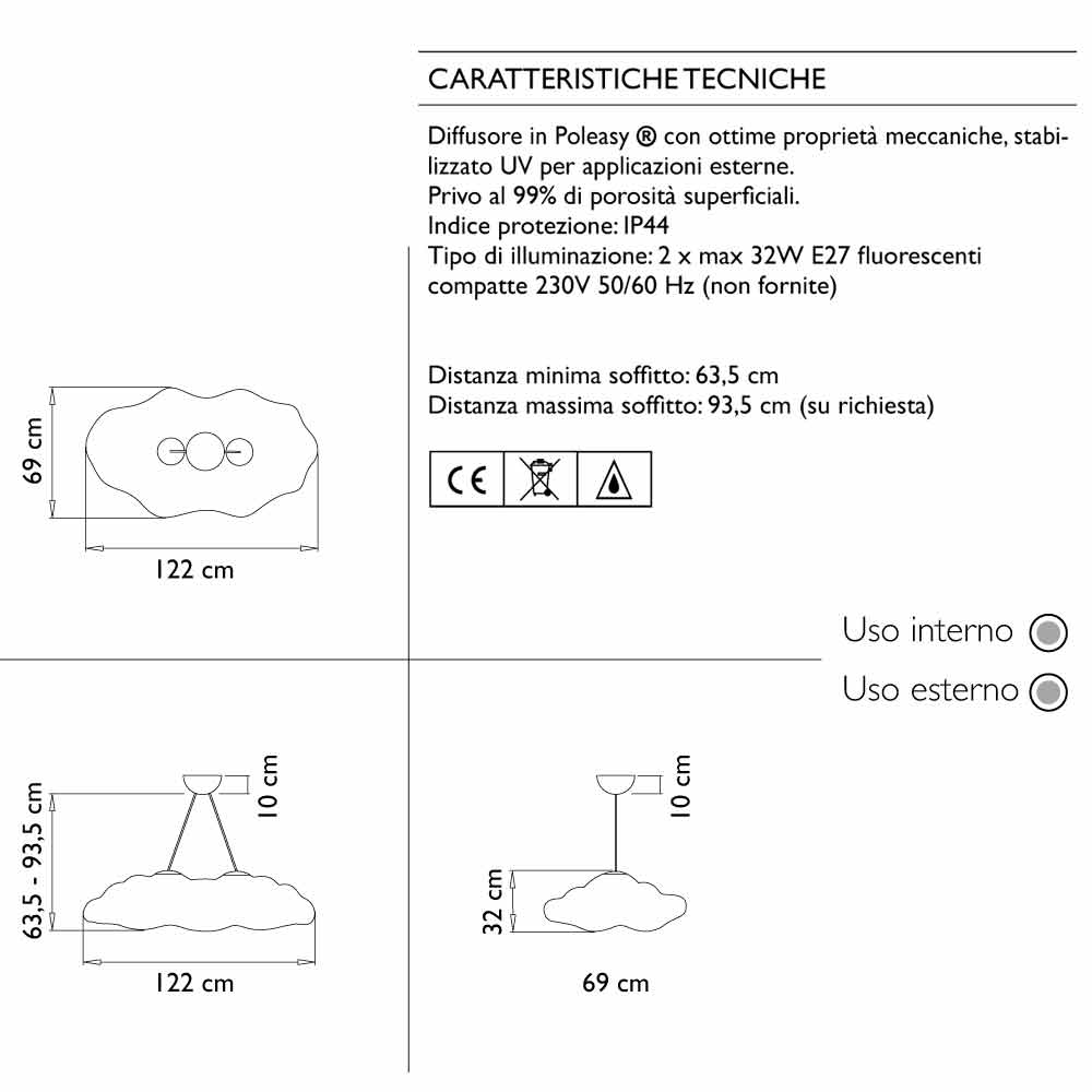 Wolkenförmige Hängelampe aus Polyethylen für den Außen- oder Innenbereich.