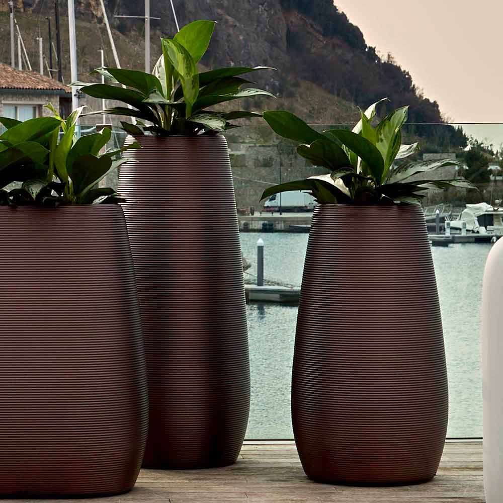 Moderne Innen- oder Außenvase aus dunklem Perlenkunststoff in 3 Größen erhältlich, hergestellt in Italien, 2 Stück.