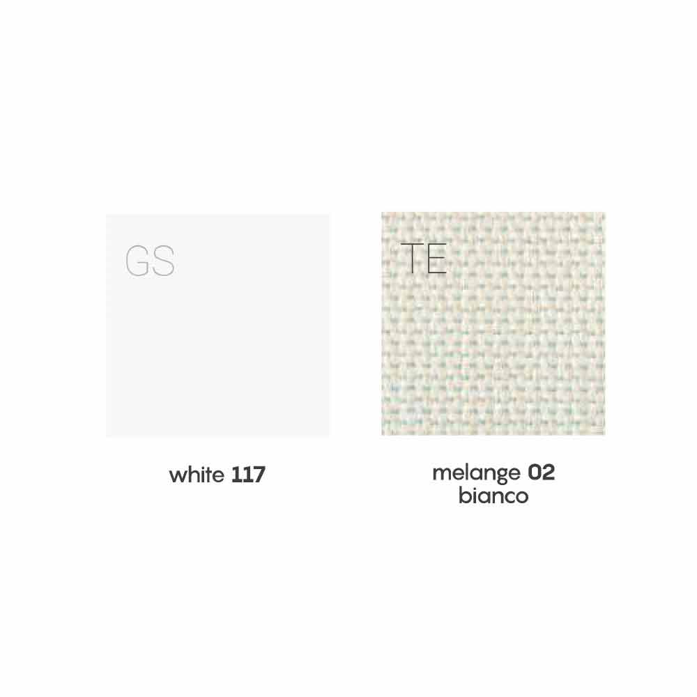 Die Polsterung ist mit wasserabweisendem weißem Melange-Stoff bezogen und abnehmbar.