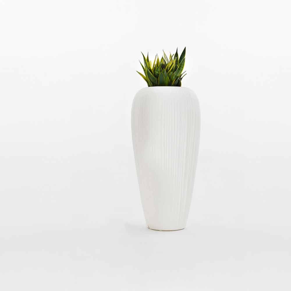 Es stehen zwei Größen zur Verfügung: S mit einem Durchmesser von 55 cm und einer Höhe von 60 cm und L mit einem Durchmesser von 60 cm und einer Höhe von 120 cm. In beiden Fällen beträgt das Loch zum Einsetzen der Pflanze immer 32 x 32 x 23,5 H cm.