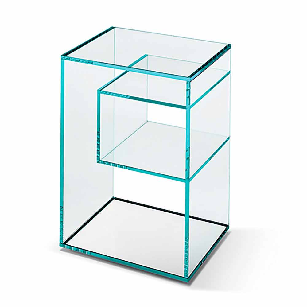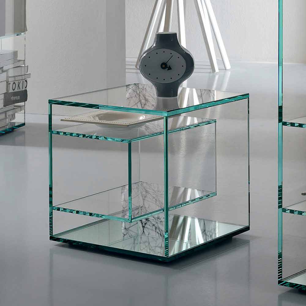 Dieser Nachttisch zeichnet sich durch sein elegantes und minimalistisches Design aus, das vollständig aus extra klarem Glas besteht.