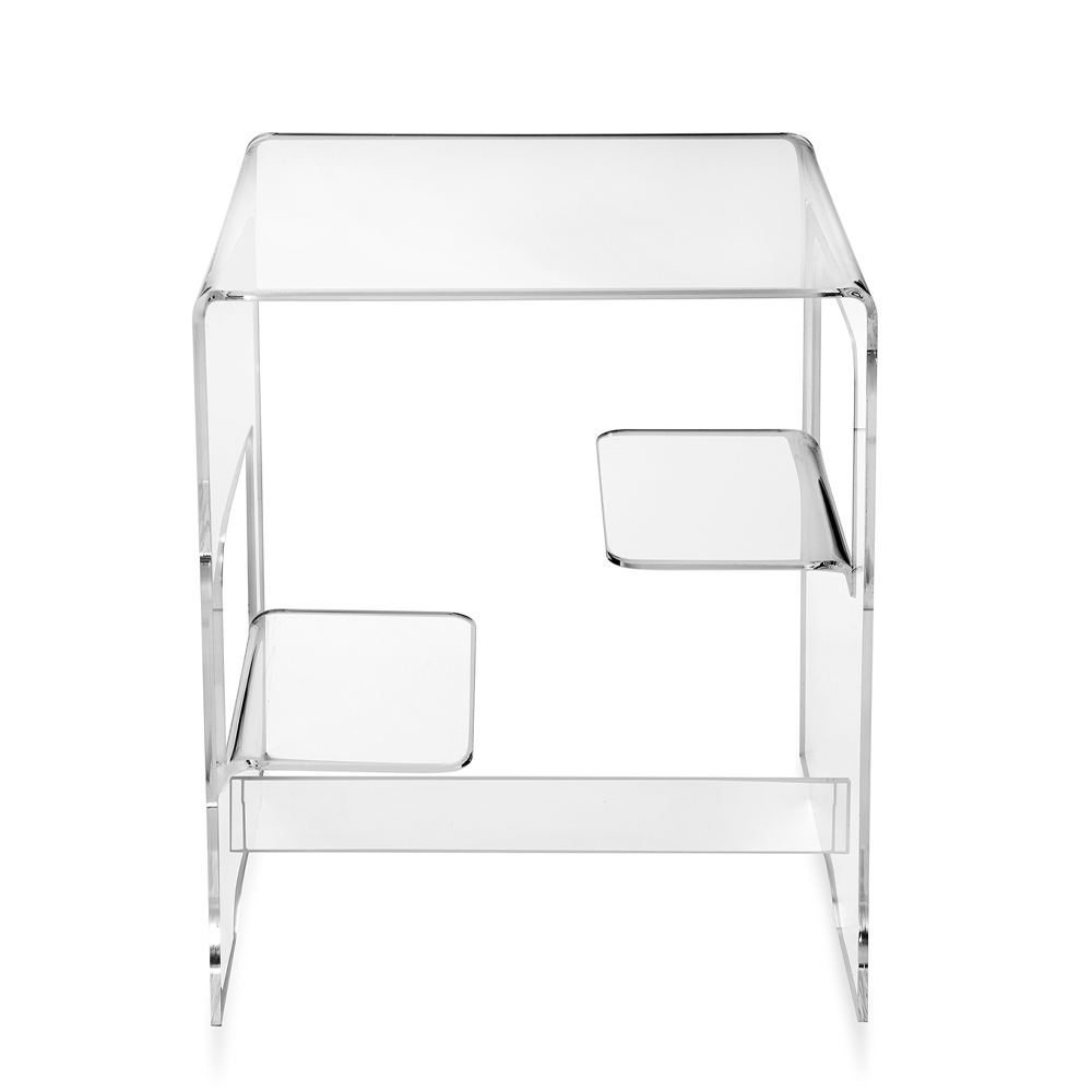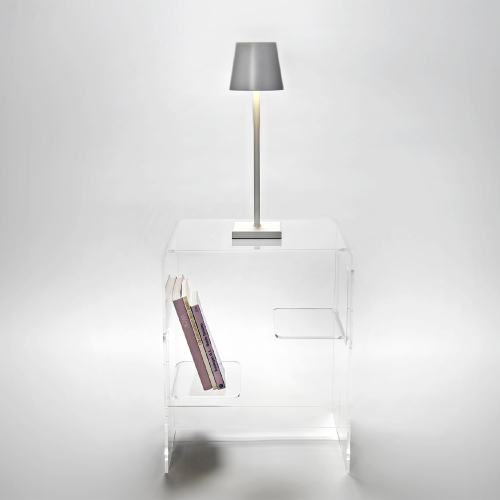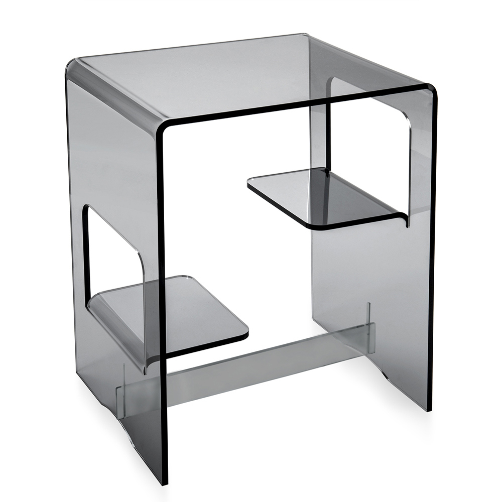 Nachttisch oder Couchtisch im modernen Design aus transparentem oder geräuchertem Plexiglas, hergestellt in Italien.