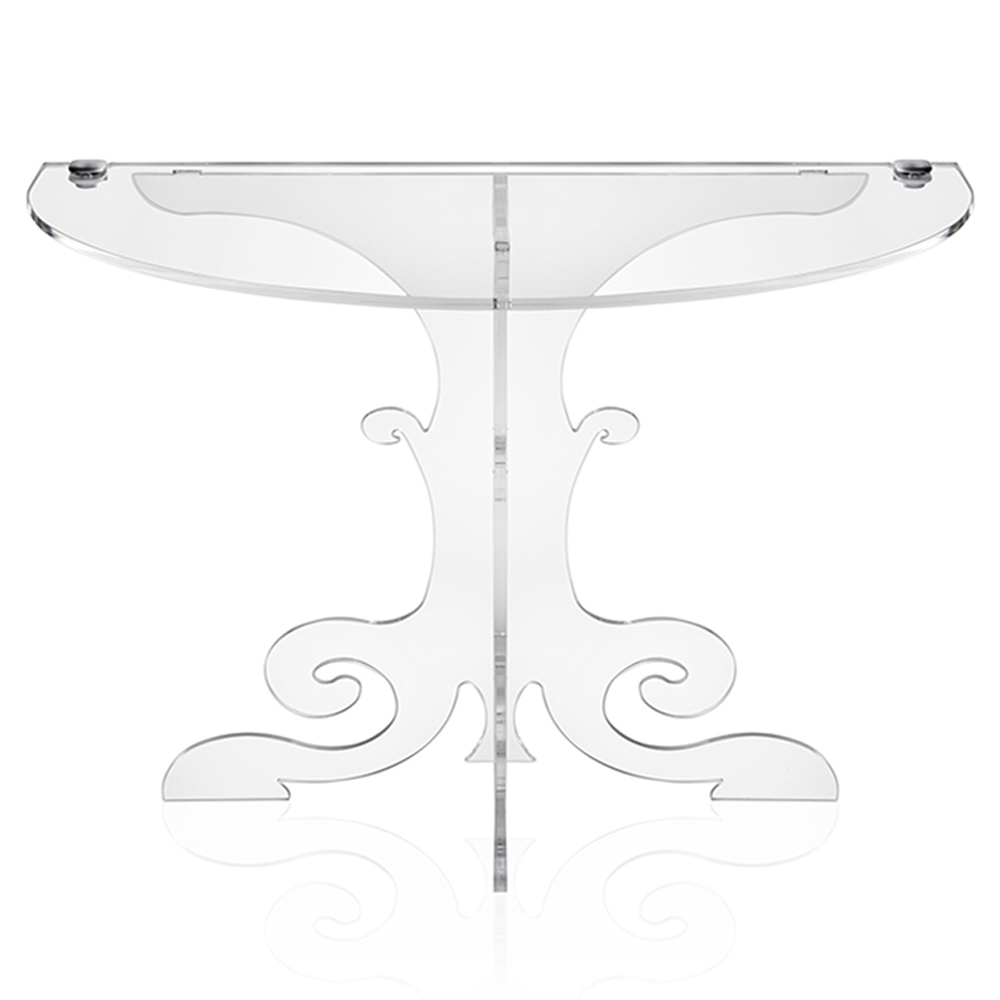 Der Nachttisch TIANA ist von den Louis XVI-Wandkonsolen des späten 18. Jahrhunderts inspiriert und mit den technologischsten transparenten Materialien neu interpretiert: 100 % PMMA-Acrylkristall aus reinem Polymer.