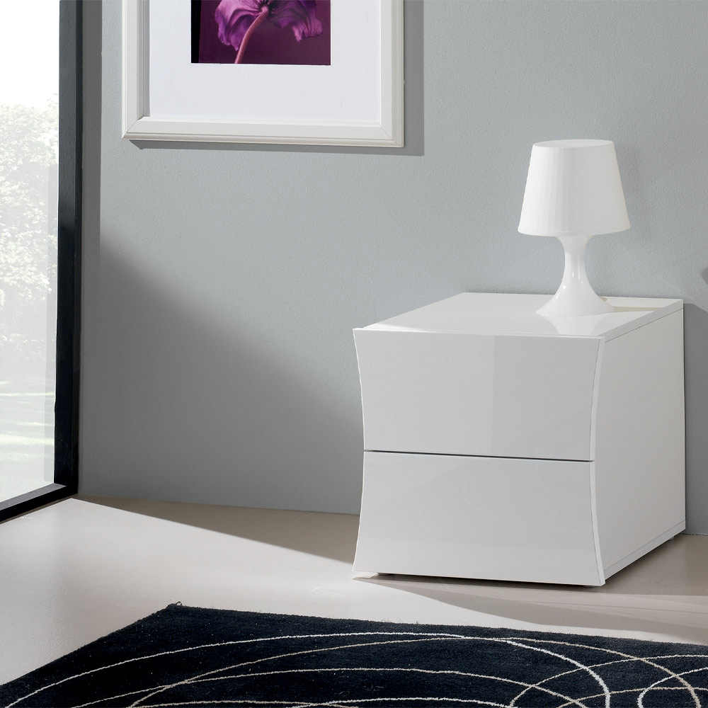 Nachttisch mit 2 Schubladen für das Schlafzimmer in weißem Design, hergestellt in Italien.