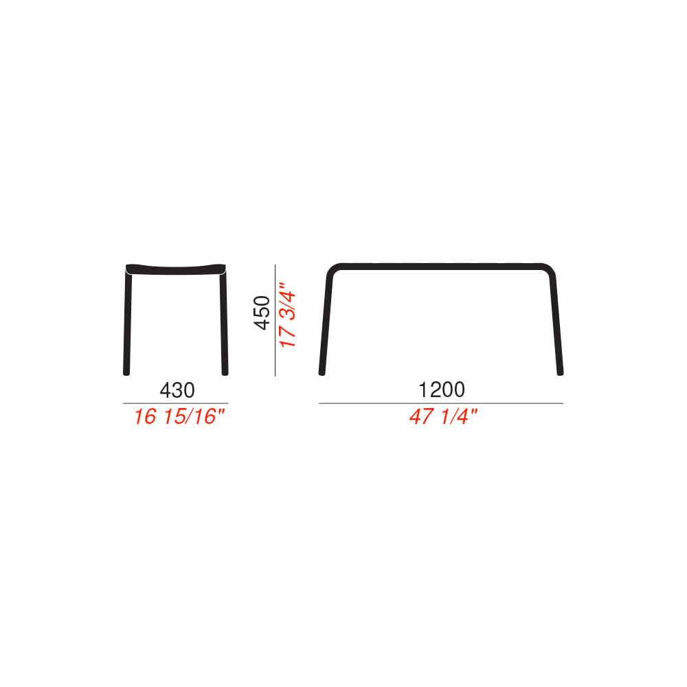 Niedrige Außenbank aus lackiertem Aluminium Made in Italy.