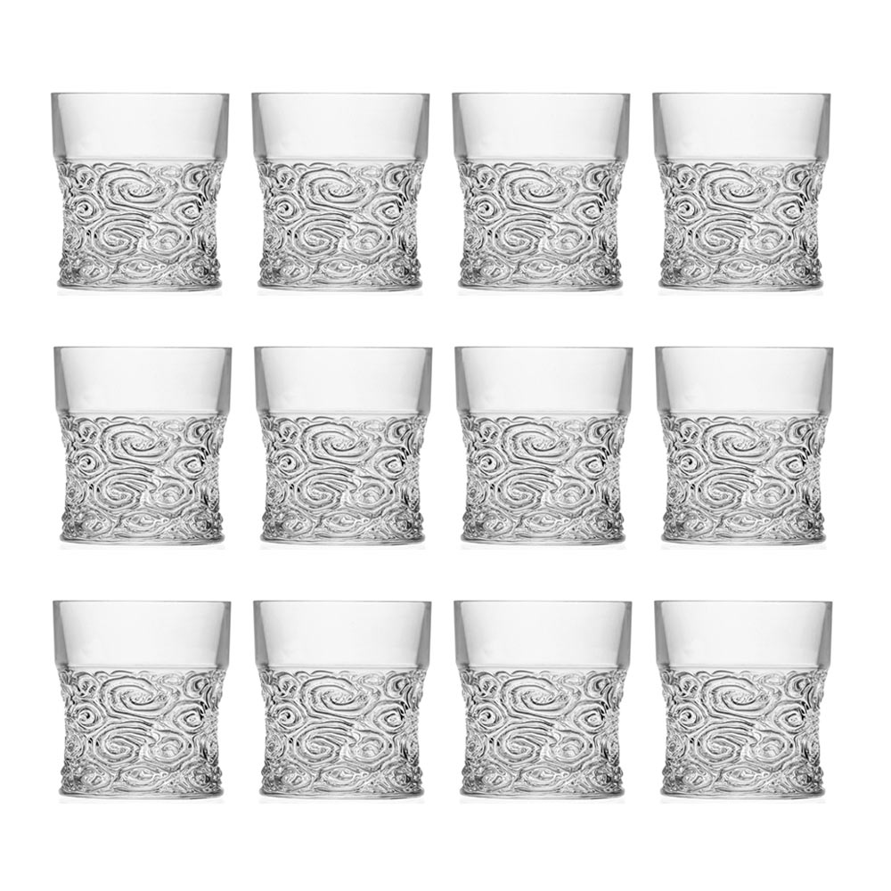 Doppelte altmodische Gläser aus Öko-Kristall mit runder Dekoration 12 Stück made in Italy.