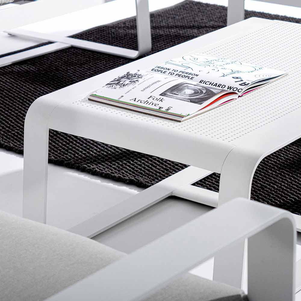 Niedriger Tisch im Freien aus weiß oder anthrazit lackiertem Aluminium - Aniello