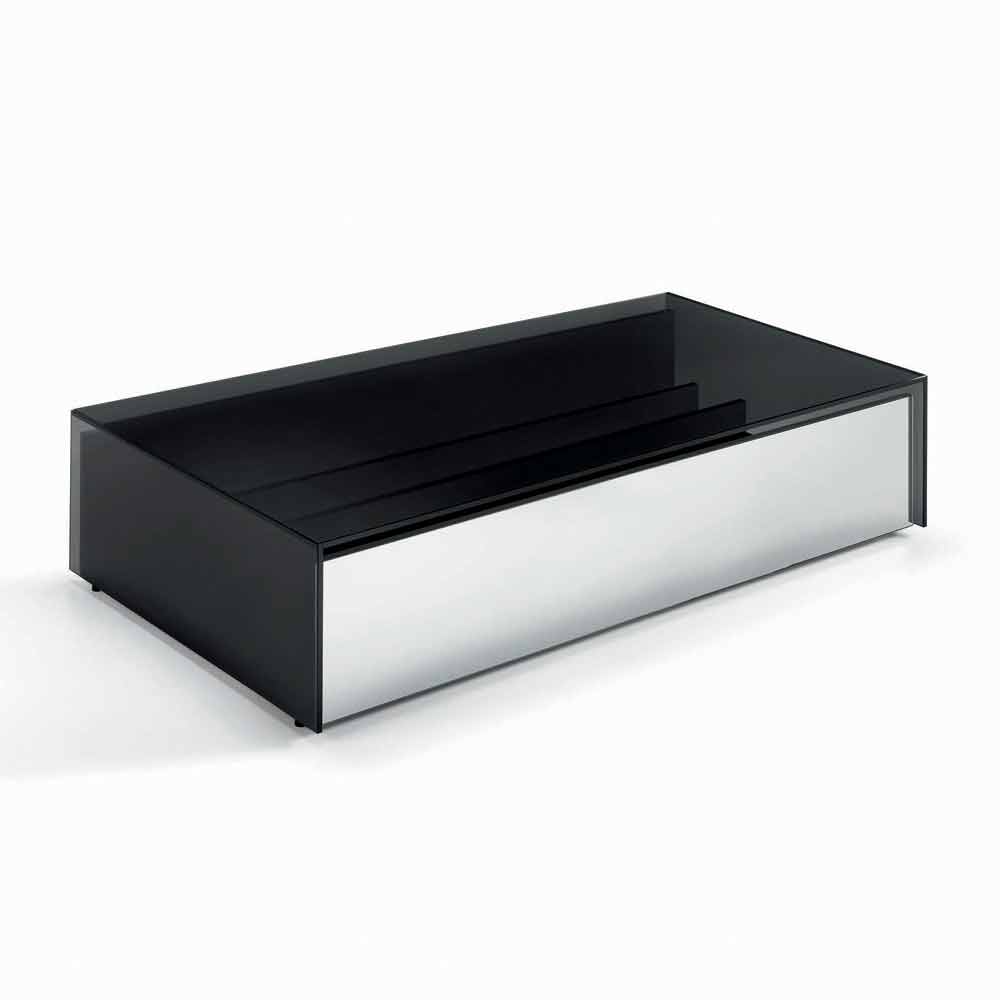 Niedriger Wohnzimmertisch aus Rauchglas und Holzschubladen 3 Größen - Mantra