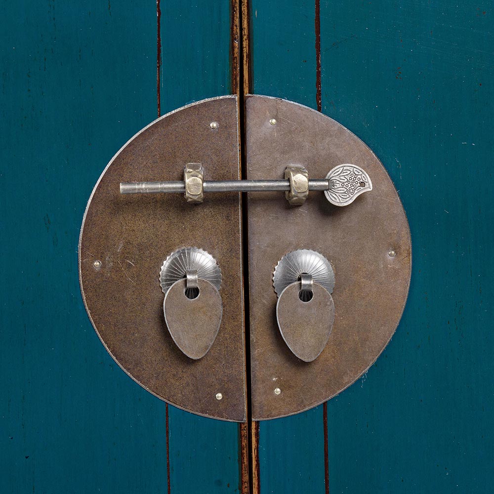 Abgerundet wird das Design durch die praktischen Kupfergriffe an den 2 Türen und an den 2 Schubladen für ein Ergebnis im Vintage-Stil mit ethnischem Touch.