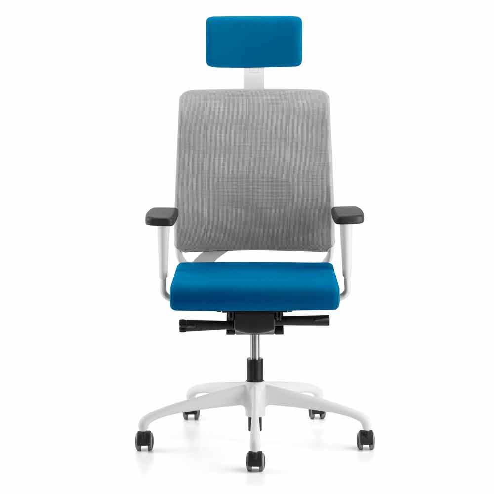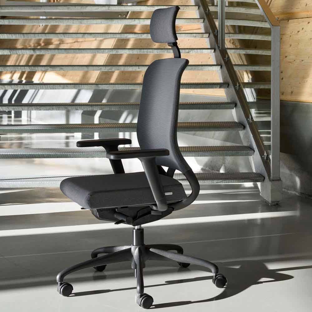 Ökologischer Bürosessel, ergonomisch, drehbar, mit Armlehnen und Kopfstütze made in Italy.