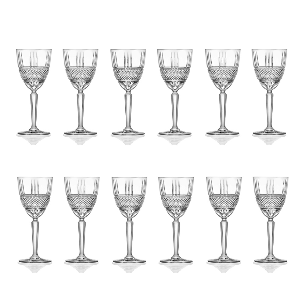 Set Wein- oder Wassergläser aus Öko-Kristall im Diamantschliff, 12-teilig made in Italy.