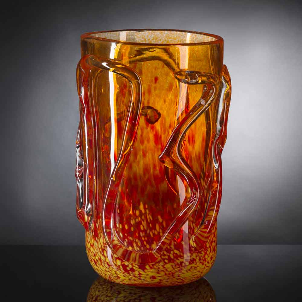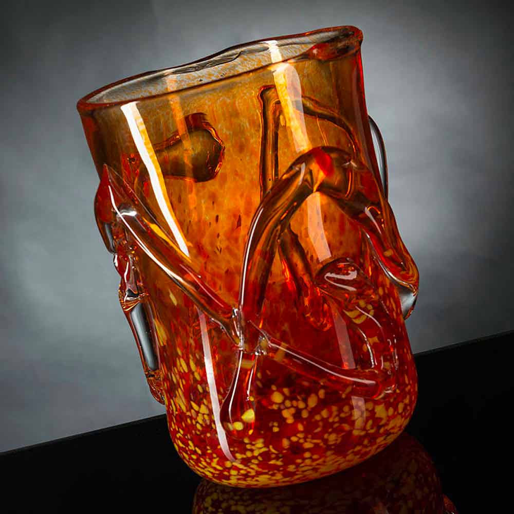 mundgeblasenem Muranoglas mit orangefarbenem Finish mit bearbeiteter Struktur. Das wunderschöne