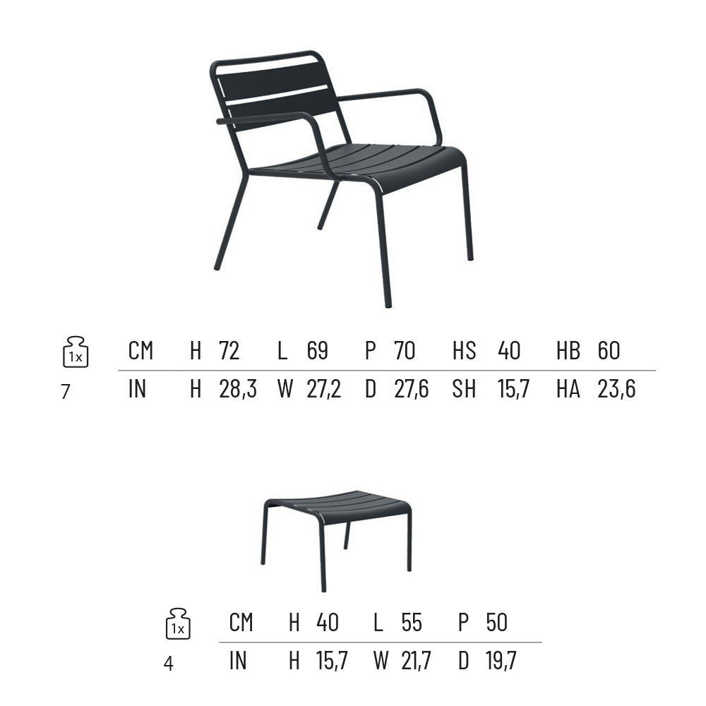 • Chaiselongue : L 69 x T 70 x H 72 cm;