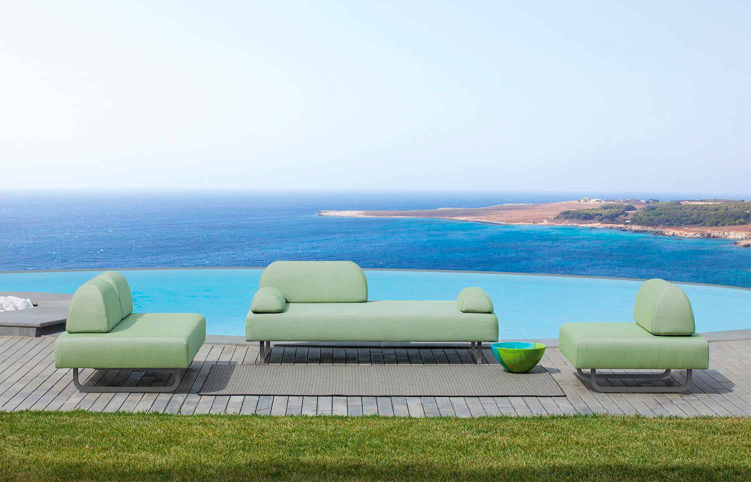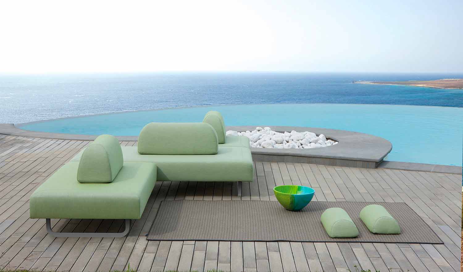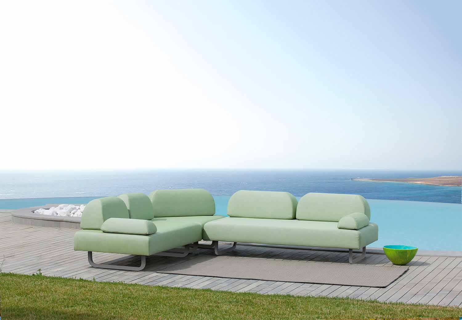Die Innenstruktur besteht aus widerstandsfähigem Holz und verfügt über eine Polsterung aus 100 % gefärbtem Acryl-Outdoor-Stoff, der speziell wegen seiner