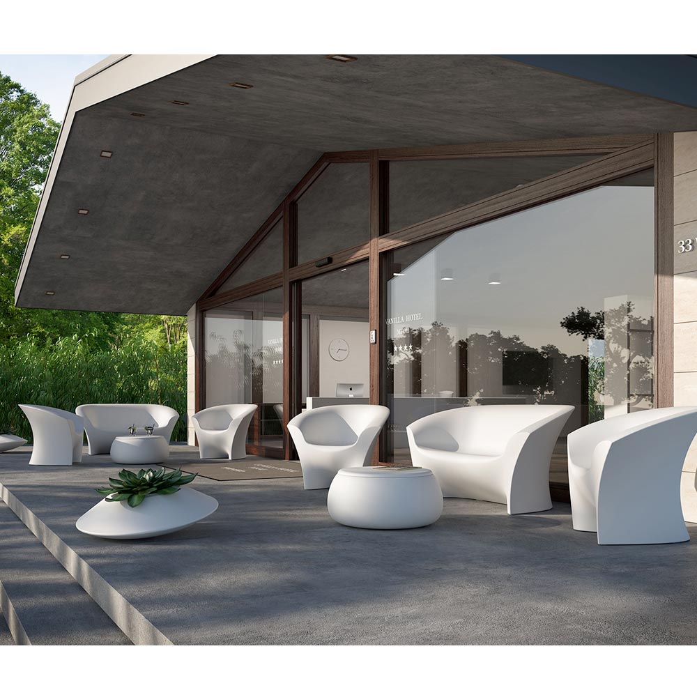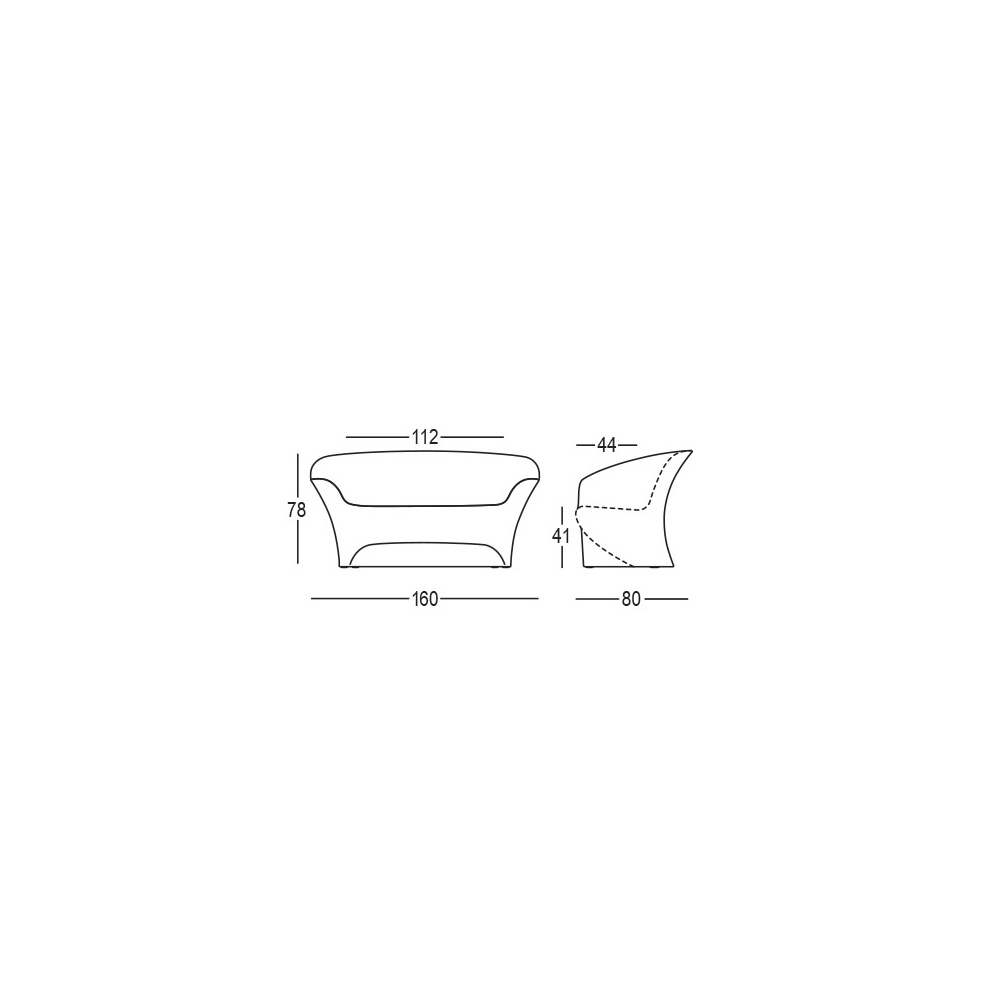 Dieses Außensofa zeichnet sich durch leichte und zarte Linien aus und ist dank des gewählten Materials gleichzeitig mit hervorragender Stabilität ausgestattet, was ein robustes und qualitativ hochwertiges Endprodukt gewährleistet. Dieses vollständig in Italien hergestellte Produkt besteht aus Polyethylen, das in der opaken Version erhältlich ist, die sich durch hervorragende Beständigkeit gegen Sonne, Stöße und Hitze auszeichnet, oder in der widerstandsfähigen und hell lackierten Version, mit der Sie Lichtspiele und Reflexionen erzeugen können, die im Inneren zu Protagonisten werden. der Umwelt. Ideal, um jede Außenumgebung mit Geschmack und Raffinesse zu dekorieren, ohne den funktionalen und praktischen Aspekt zu vernachlässigen.