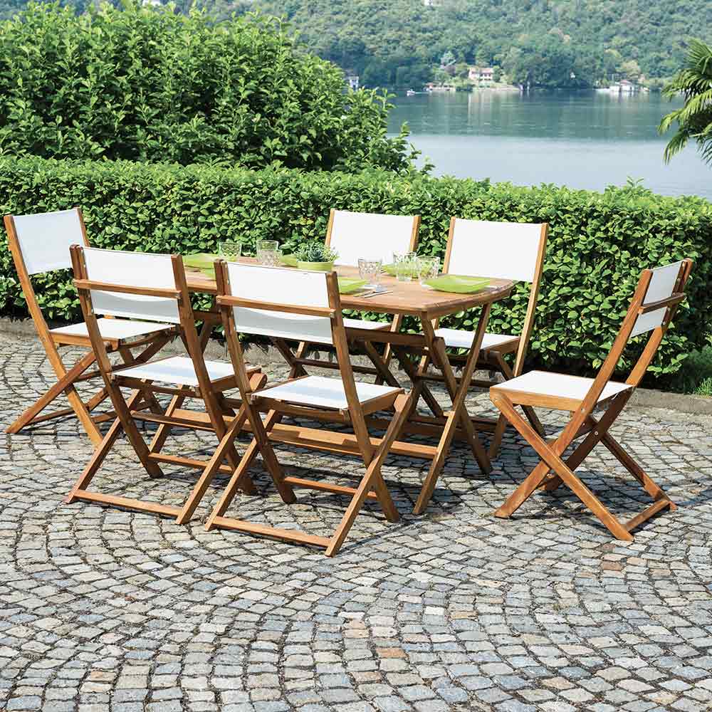 Akazienholz , bekannt für seine Langlebigkeit und Witterungsbeständigkeit, sorgt dafür, dass dieser Stuhl seine natürliche Schönheit und strukturelle Integrität über die Zeit behält. Sitz und Rückenlehne aus ecrufarbenem Textilene , einem innovativen und widerstandsfähigen Material, verleihen einen Hauch von Modernität und Frische und fügen sich harmonisch in jede Außenumgebung ein.