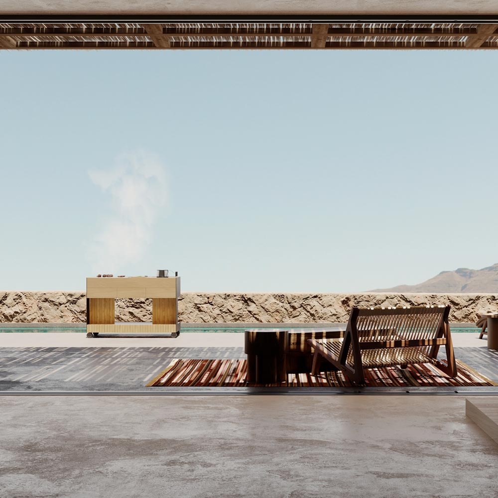 Diese Outdoorküche stellt die perfekte Mischung aus Funktionalität und zeitgenössischem Design dar, ideal um jeden Moment im Freien zu einem einzigartigen Erlebnis zu machen. Der pulverbeschichtete Aluminiumrahmen bietet Robustheit und Witterungsbeständigkeit, während die hochwertigen massiven Teak-Einsätze, die mit Rubio Monocoat Hybrid Wood Protector behandelt wurden, einen Hauch von natürlicher Eleganz und visueller Wärme verleihen.