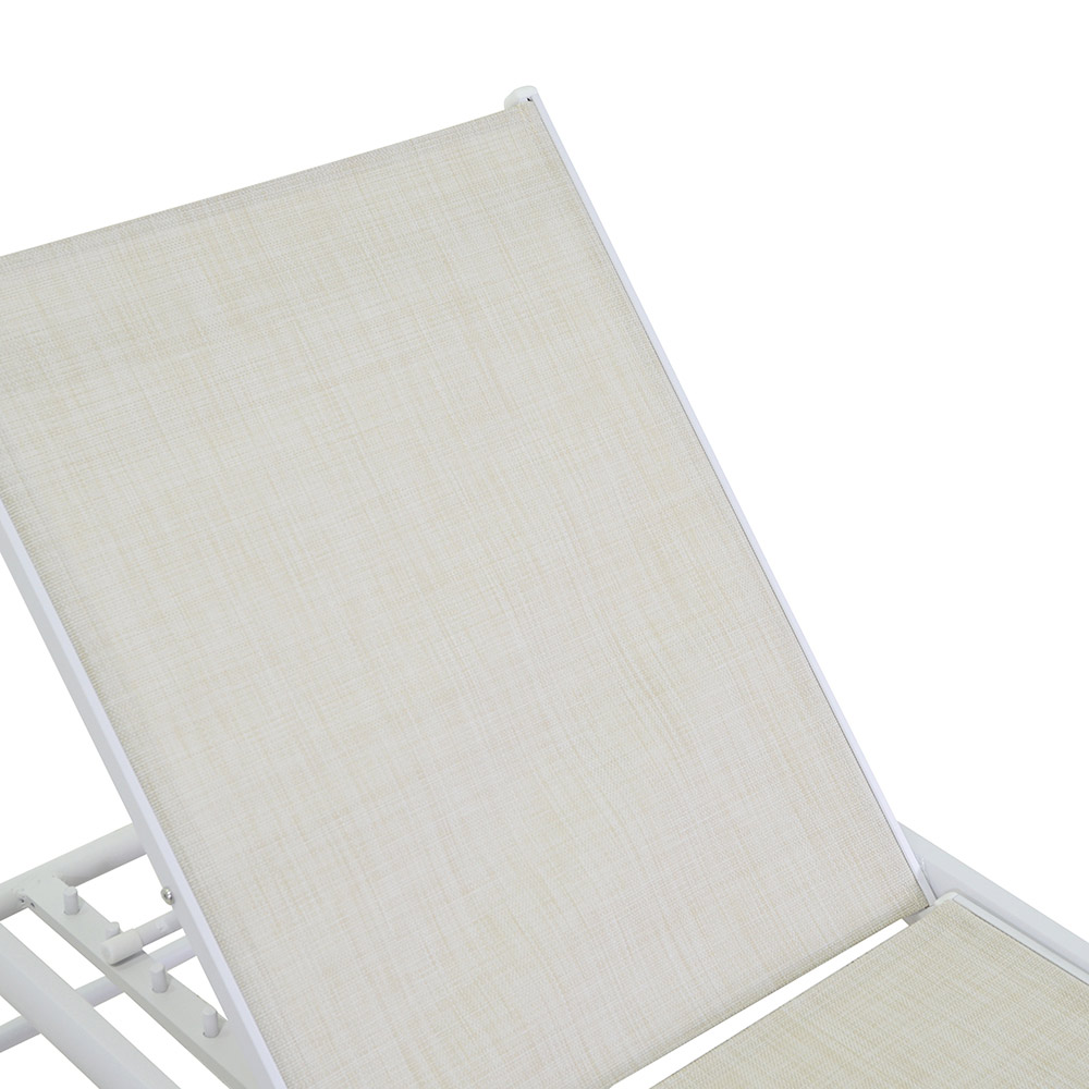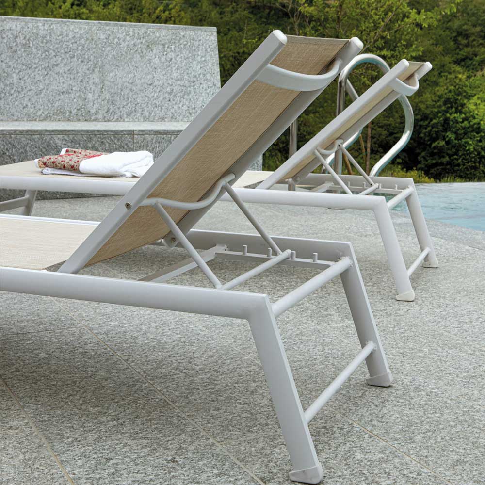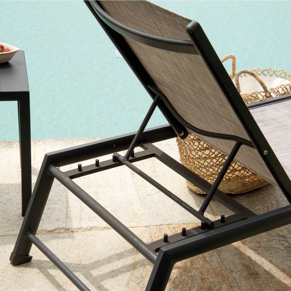 Hergestellt mit einem Aluminiumrahmen, ist die Liege sowohl leicht als auch korrosionsbeständig, was Langlebigkeit und Bewegungsfreiheit garantiert. Die bequeme, atmungsaktive und pflegeleichte Textilene-Oberfläche bietet auch an den heißesten Tagen einen angenehmen Liegekomfort.