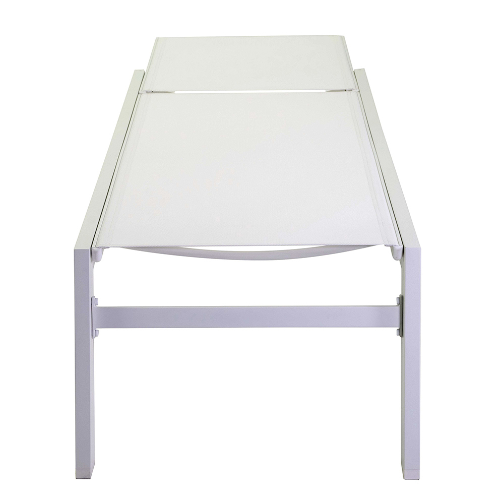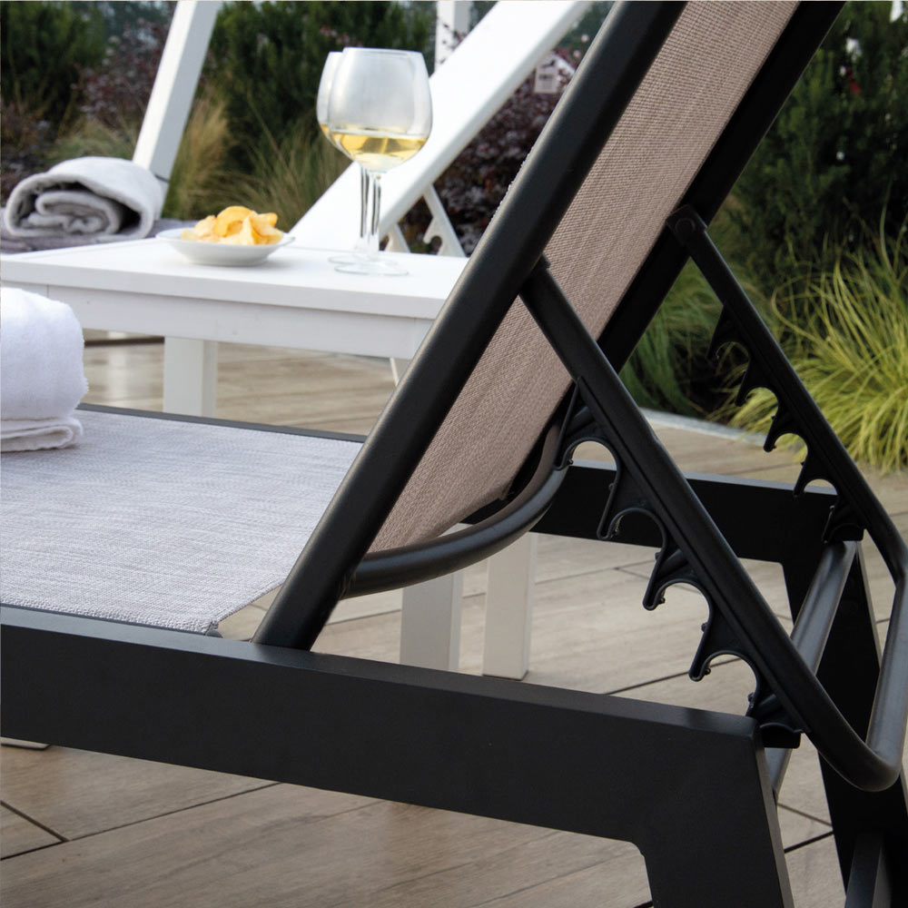 Das Textilene-Gewebe ist nicht nur langlebig und leicht zu reinigen, sondern bietet auch außergewöhnlichen Komfort, so dass Sie stundenlang entspannen können, ohne Kompromisse einzugehen. Die verstellbare Rückenlehne ermöglicht es Ihnen, den perfekten Winkel für jeden Moment der Entspannung zu finden, von einer ruhigen Lektüre bis hin zu einem Nachmittagsschlaf.
