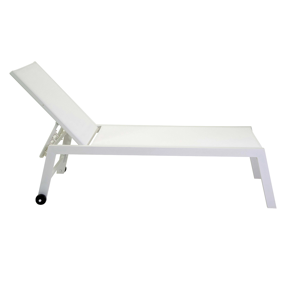 Tauchen Sie ein in Komfort und Stil mit unserer Sonnenliege aus Aluminium, ideal zum Entspannen in der Sonne oder für einen entspannten Nachmittag im Freien. Die Liege zeichnet sich durch ein schlankes, minimalistisches Design mit einem leichten und dennoch stabilen Rahmen aus, der dank der praktischen eingebauten Räder leicht zu transportieren ist.