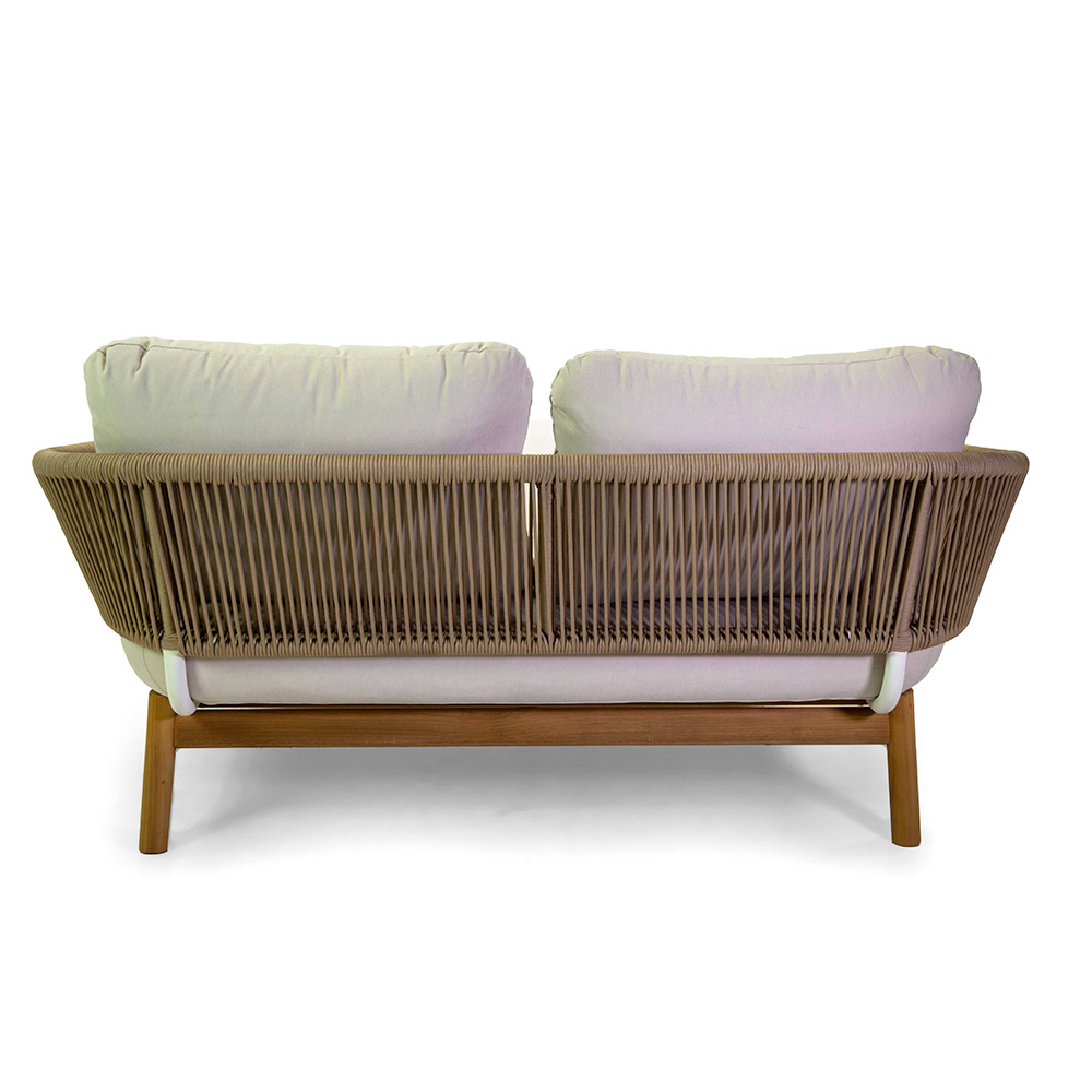Outdoor-Liege mit Teakholzrahmen, Seilen und Kissen - Zelt