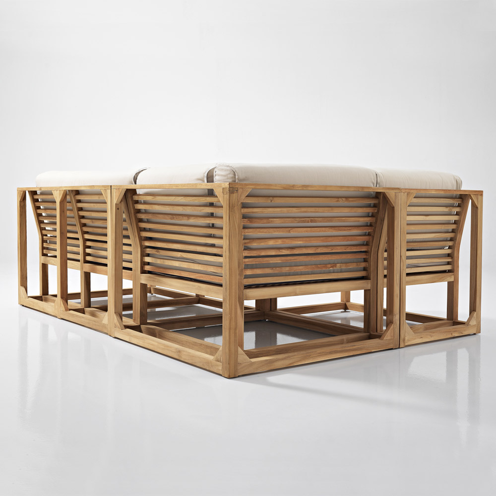 Modulare Gartenlounge aus natürlichem Teakholz und Kissen