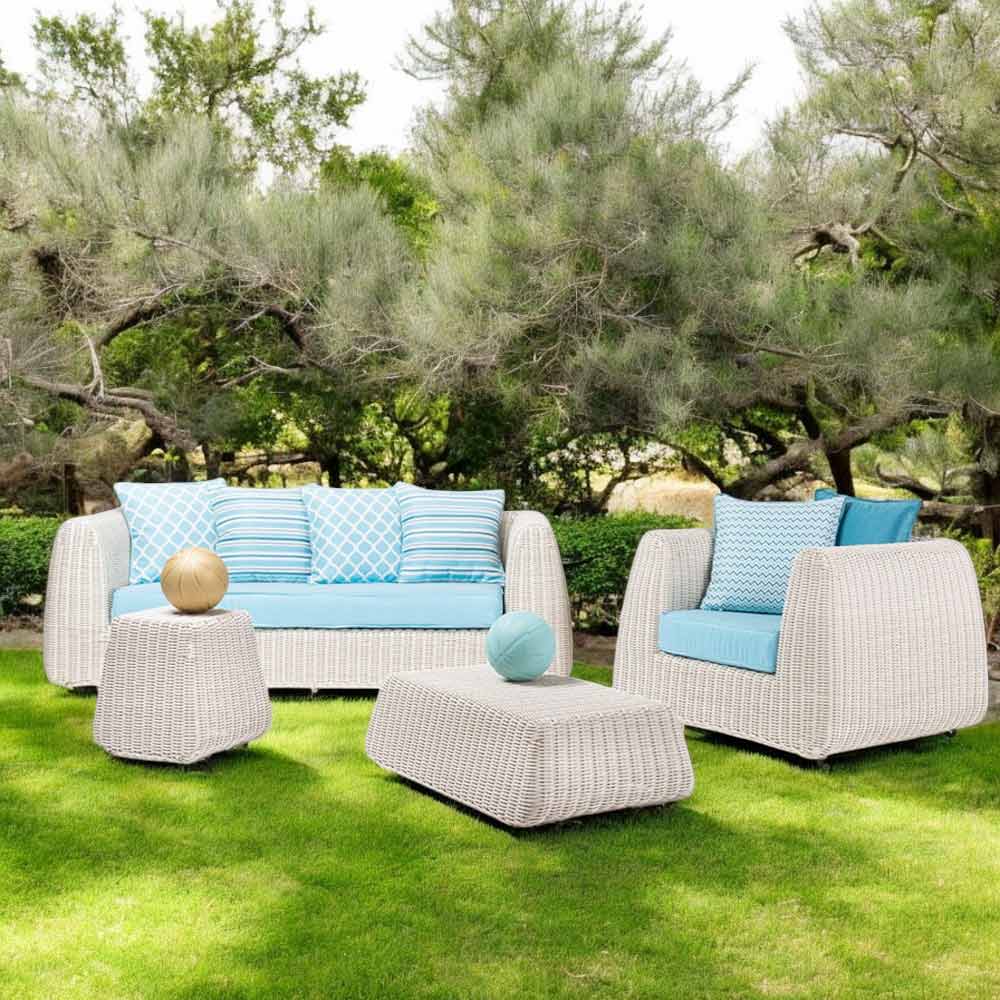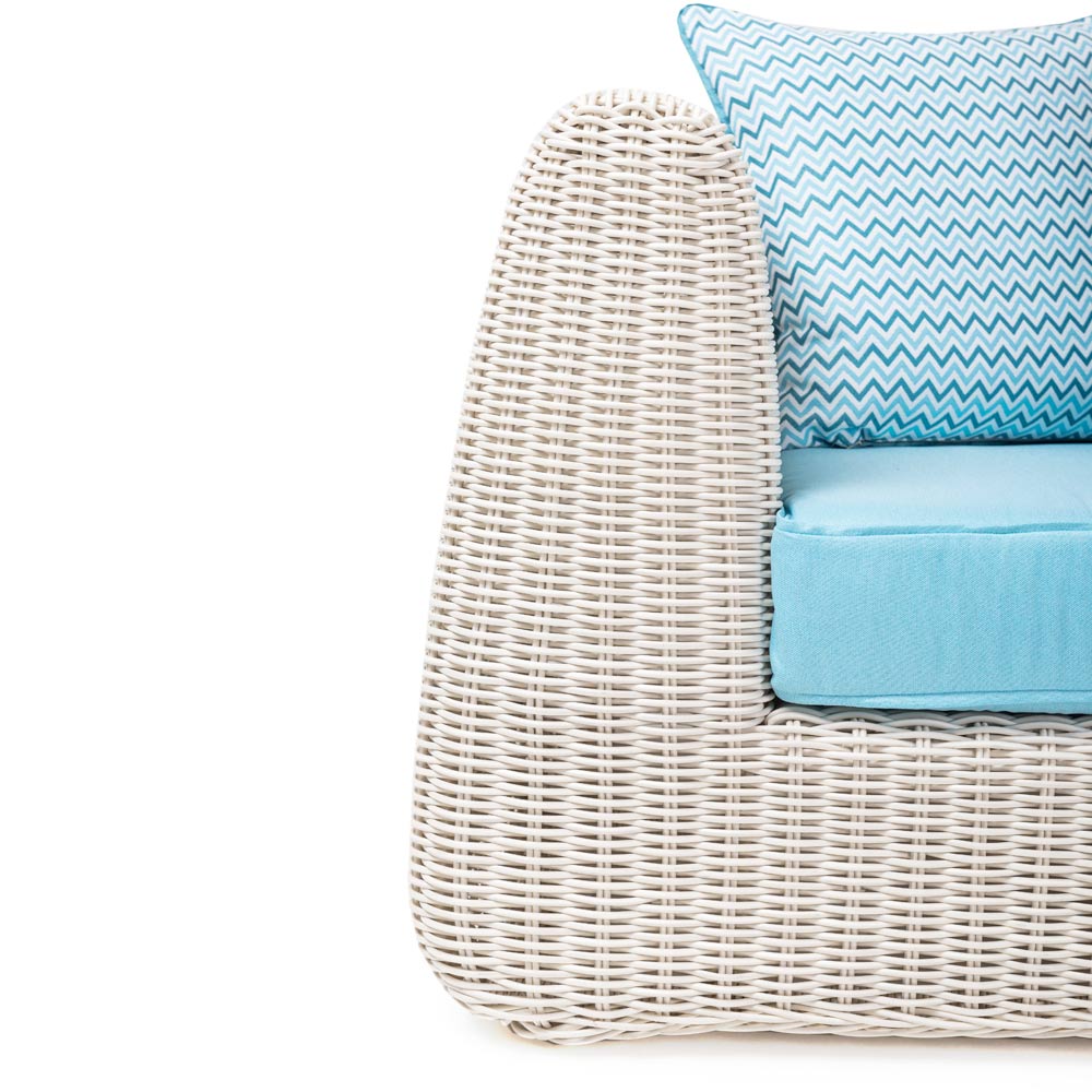Das raffinierte Design , die sehr hohe Qualität der Materialien und seine geschwungenen Formen machen ihn perfekt für die Innen- und Außeneinrichtung. Dank der Verwendung spezieller hochwertiger Materialien hat diese Outdoor-Lounge dank der Zertifizierung der gewebten Faser keine Angst vor schlechtem Wetter und Temperaturschwankungen.