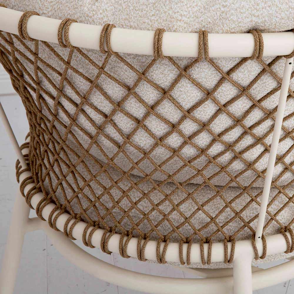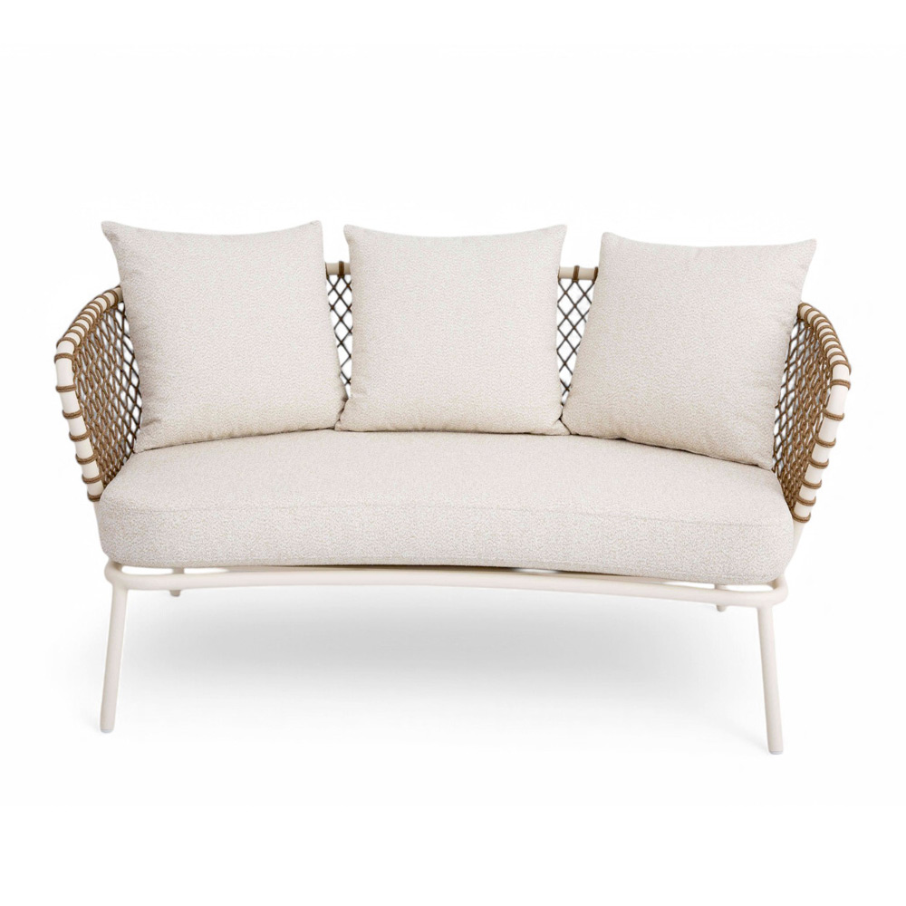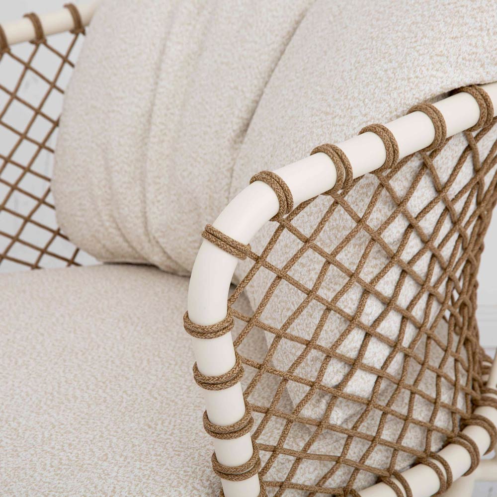 Das gewebte Design mit synthetischem Seil erzeugt einen faszinierenden und fesselnden visuellen Effekt, perfekt, um Ihrem Garten oder Ihrer Terrasse einen Hauch von Stil zu verleihen. Die weichen Kissen, gepolstert und mit Stoff bezogen, sorgen für absolute Entspannung und höchsten Komfort, ideal für Ihre Momente des Innehaltens oder um Ihre Gäste stilvoll zu empfangen.