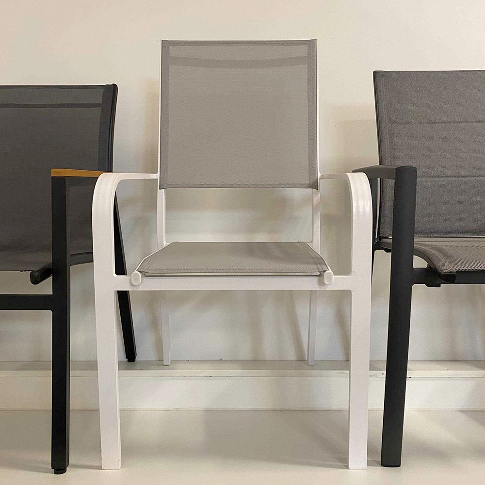 Unser Aluminiumsessel verkörpert die perfekte Verschmelzung von moderner Eleganz und praktischem Komfort. Ausgestattet mit einem pulverbeschichteten Aluminiumrahmen bietet dieser Sessel außergewöhnliche Haltbarkeit und Witterungsbeständigkeit, was ihn ideal für den Außenbereich macht. Der Textilene Stoff verleiht nicht nur einen Hauch von Klasse, sondern ist auch leicht zu reinigen und hält den Stuhl auch in der Sonne kühl.