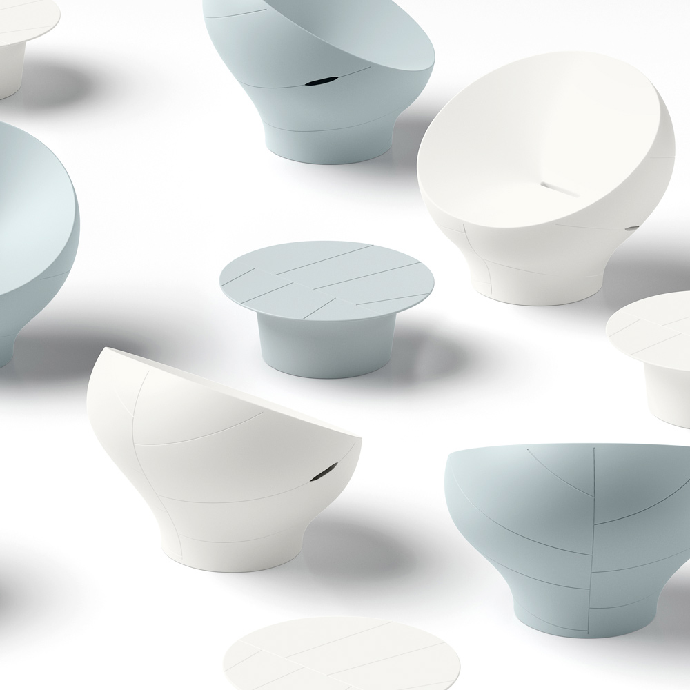 Dieser Sessel besticht durch seine weichen, einladenden Linien , die von natürlichen Formen inspiriert sind und eine harmonische und moderne Optik erzeugen. Die kompakte, fließende Monoblock-Struktur verleiht Räumen Charakter und bewahrt gleichzeitig eine schlichte, elegante Ästhetik.