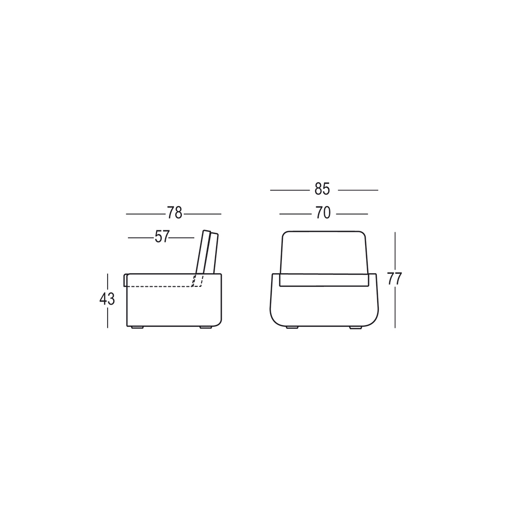 opakem Polyethylen, das sich durch hervorragende Beständigkeit gegen Sonne, Hitze und Stöße auszeichnet. Dank seines modernen und eleganten Designs ist dieser Sessel die ideale Lösung für Umgebungen, die eine raffinierte Note benötigen, ohne den funktionalen Aspekt des Komforts zu vernachlässigen.