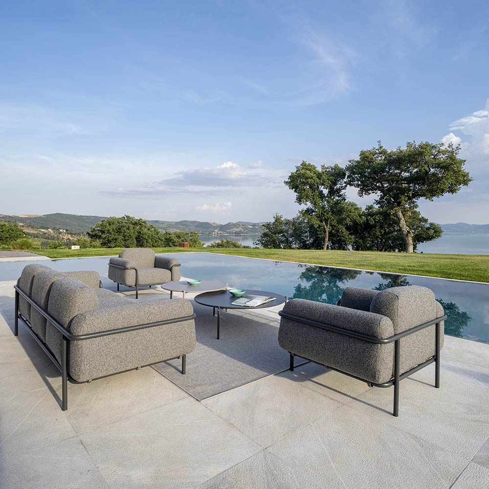 Das Design mit klaren Linien und abgerundeten Ecken macht das Produkt einladend und einladend . Die großzügigen Sitzflächen und weichen Profile verleihen Räumen einen zeitgenössischen Charme . Der Sessel ist perfekt für alle, die einen schlichten und eleganten Einrichtungsstil bevorzugen, der jedem Kontext Modernität und Frische verleiht.