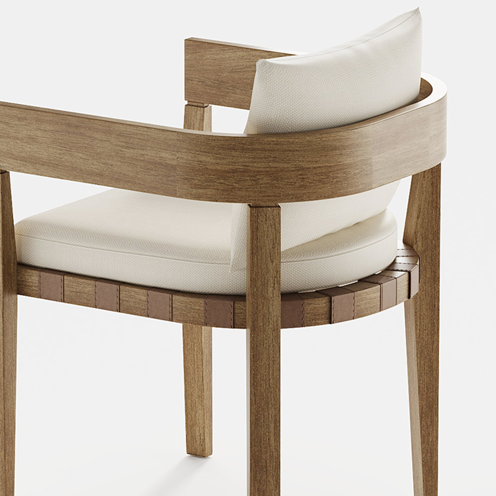 Gartensessel komplett in Italien hergestellt, mit Sitz- und Rückenkissen aus gepolstertem Stoff Irisun® Living Solids und Struktur aus verwittertem Teakholz. Der Sessel ist mit Lederriemen in der Sitzstruktur verziert. Dieses Produkt mit zarten und essentiellen Linien ist perfekt für alle, die den modernen und minimalistischen Stil lieben. Die organische Form und die skulpturalen Beine verschmelzen zu einem einfachen Element mit harmonischen Proportionen, das sich für die Einfügung in jede Außenumgebung eignet und eine bezaubernde Atmosphäre mit einfachen Linien und Retro-Geschmack schafft. Die für die Herstellung verwendeten Materialien garantieren Qualität und Beständigkeit auch im Laufe der Zeit und machen dieses Einrichtungsaccessoire perfekt für jede Situation und jeden Verwendungszweck.