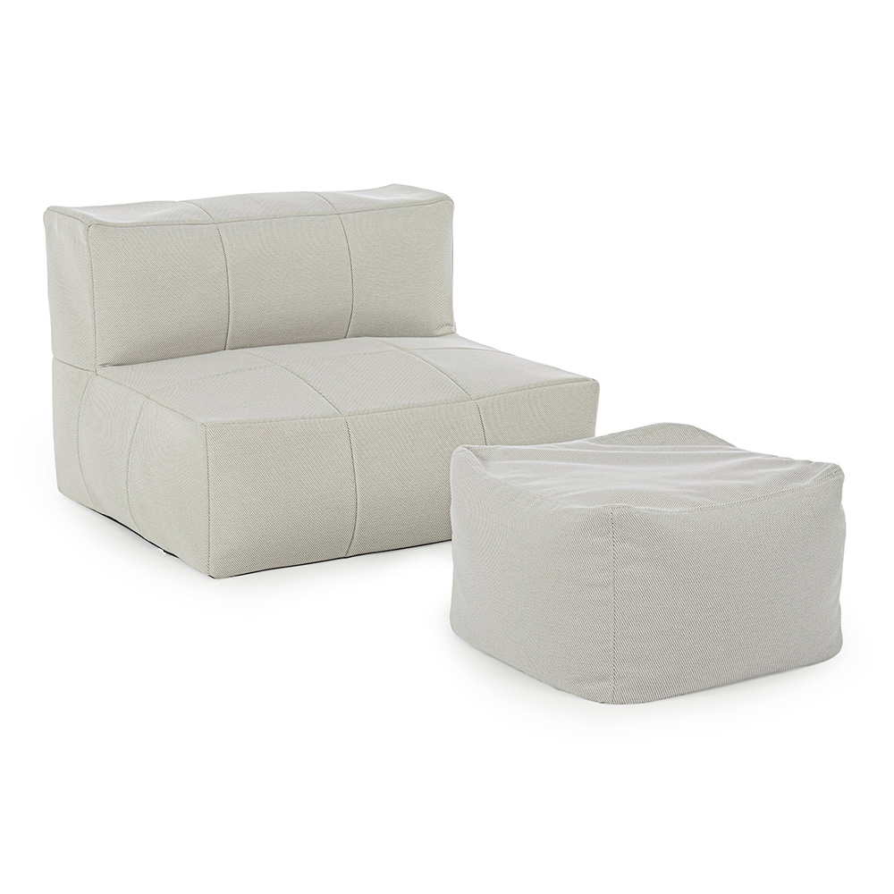 Gepolsterter Outdoor-Sessel mit hochwertigem farbigem Stoffbezug.