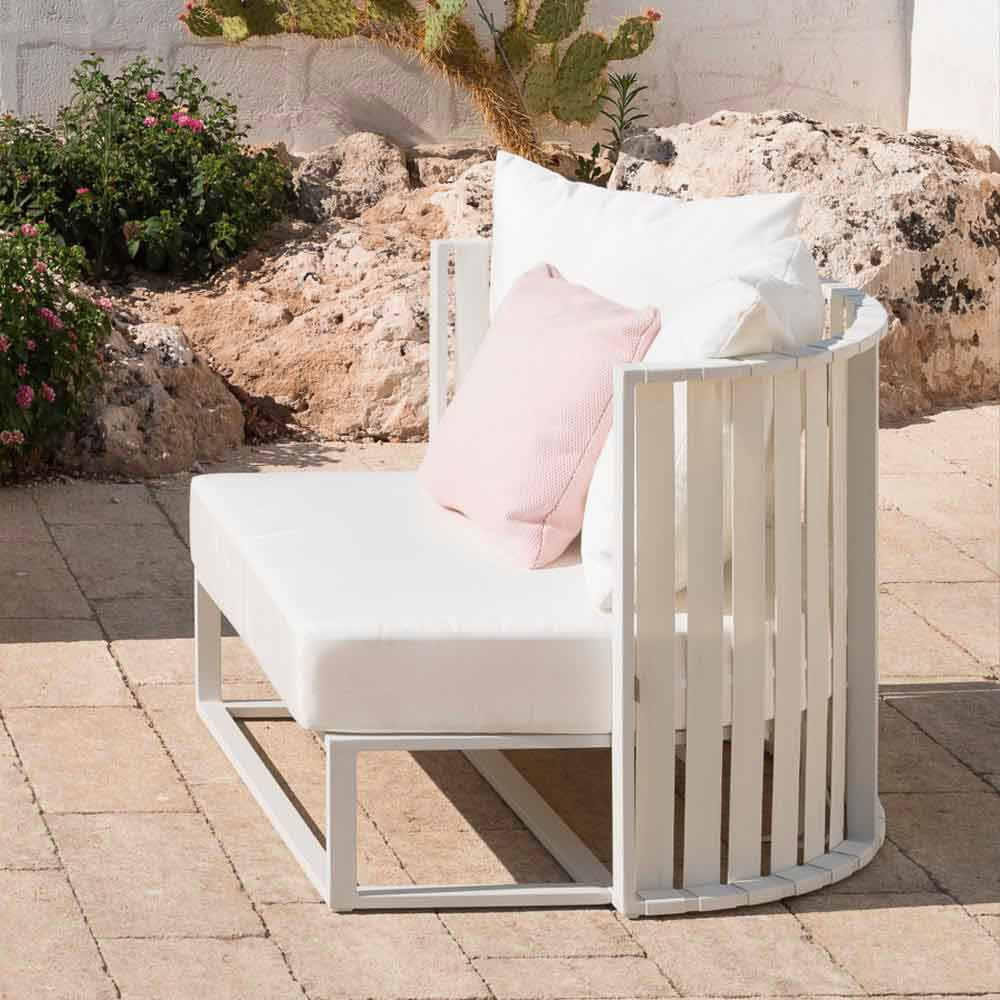 Luxus Design Garten Relax Sessel aus Aluminium und Seil mit Stoffkissen, verschiedene Oberflächen.