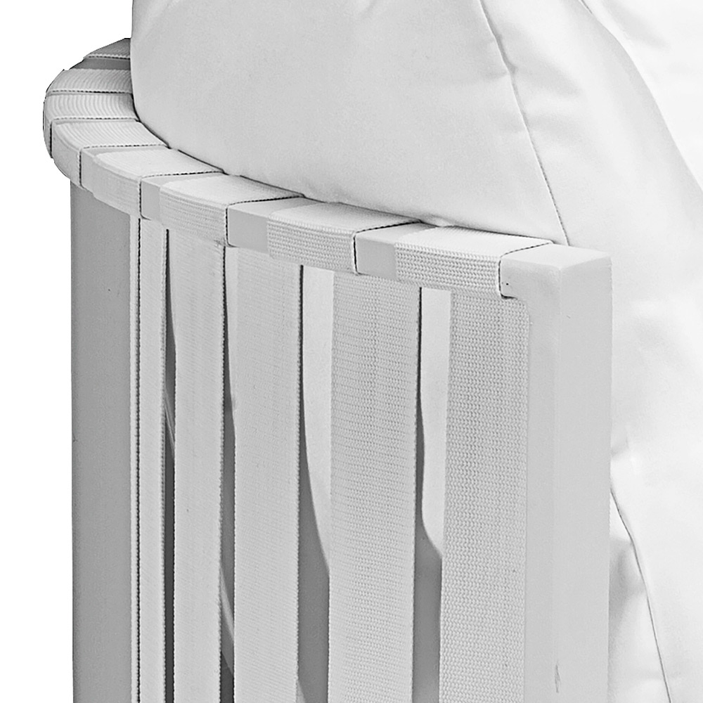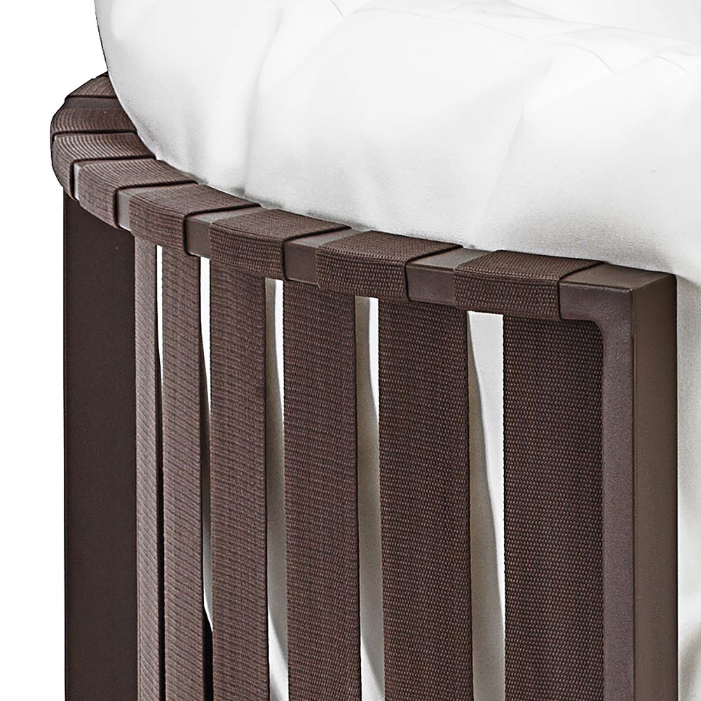 Das raffinierte, elegante und raffinierte Design dieses Outdoor-Sofas zeichnet sich durch den Wechsel von vollen und leeren Räumen aus, wodurch ein leichtes und zeitgemäßes Erscheinungsbild entsteht.
