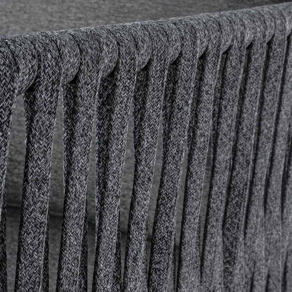 Pulverbeschichtete Aluminiumstruktur (Polyester). Gewebt mit Tetoronschnüren (100% Polyester). Sitz- und Rückenkissen mit abnehmbaren Bezügen aus Olefin-Stoff (100% Polypropylen).