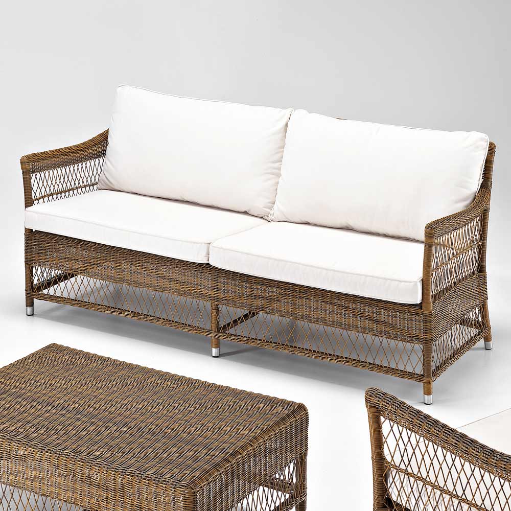 Der Geflechtstil ist raffiniert und zart und zusammen mit der sehr hohen Qualität der Materialien und seinen entschiedenen Formen macht dieses Sofa perfekt für die Einrichtung von Interieurs und Exterieurs, sowohl im privaten als auch im Objektbereich wie Terrassen, Veranden, Gärten, aber auch am Pool.