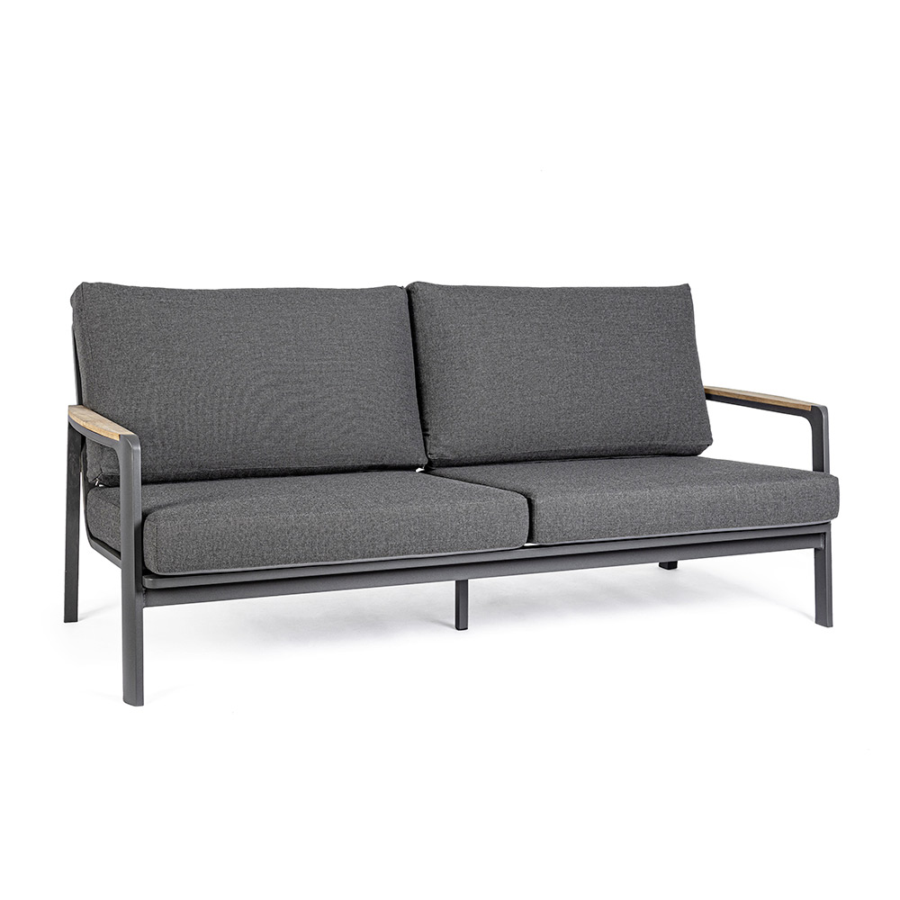 Hochwertiges Outdoor-Sofa mit Aluminiumstruktur und Sitz aus abnehmbarem Stoff.