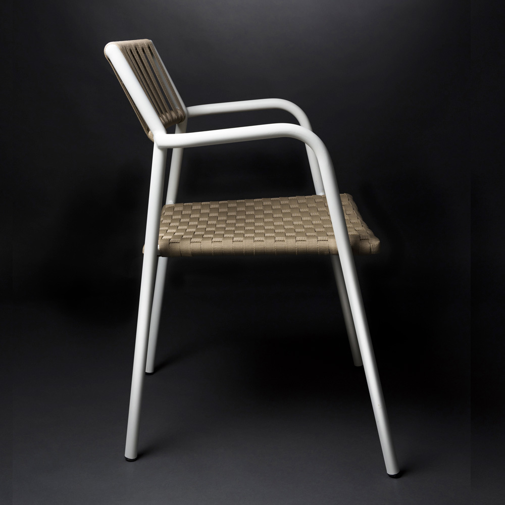 Außenstuhl mit Armlehnen aus Aluminium und gewebtem Stoff