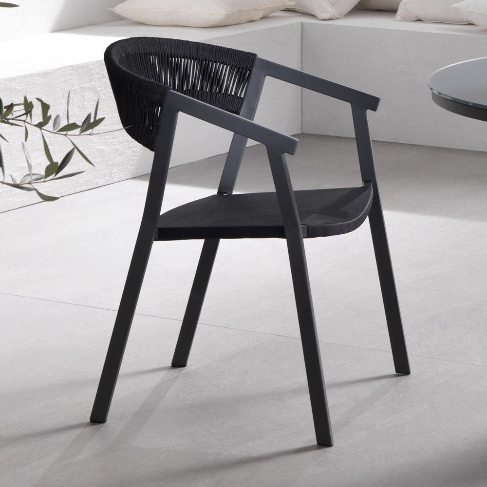 Gartenstuhl mit epoxidpulverbeschichteter Aluminiumstruktur und Seilgeflecht – 2 Stück