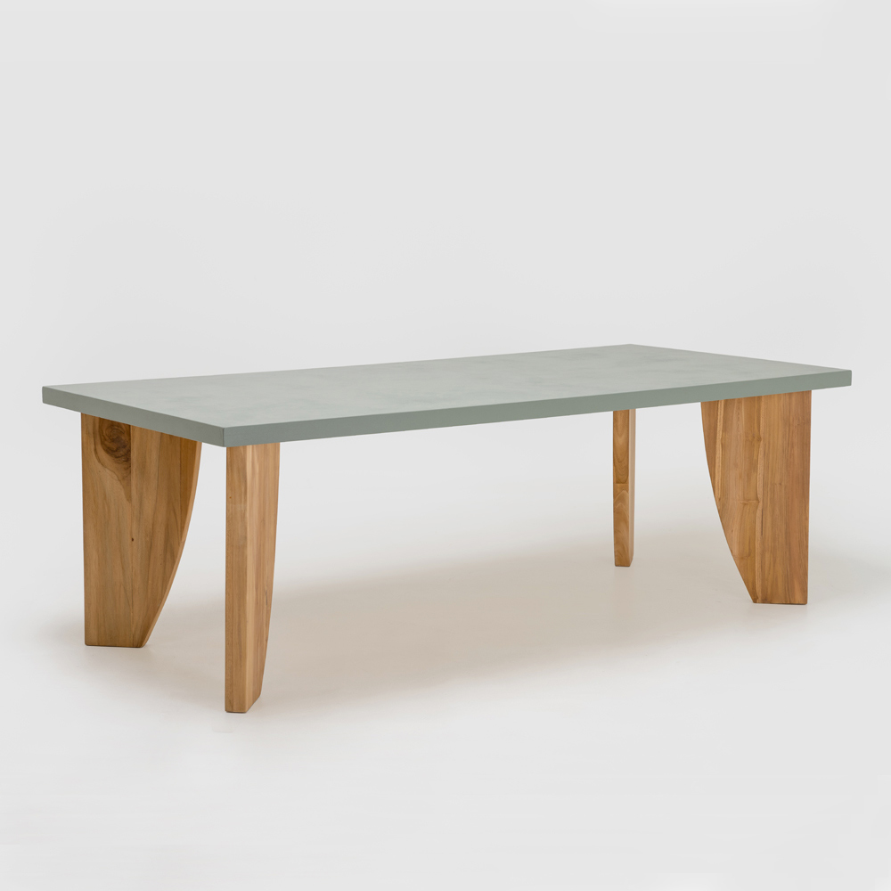 Verarbeitung der Tischplatte ist ein Stil-Statement, das die Aufmerksamkeit auf sich zieht und zu geselligen und entspannten Momenten einlädt. Die Beine zeugen von der meisterhaften